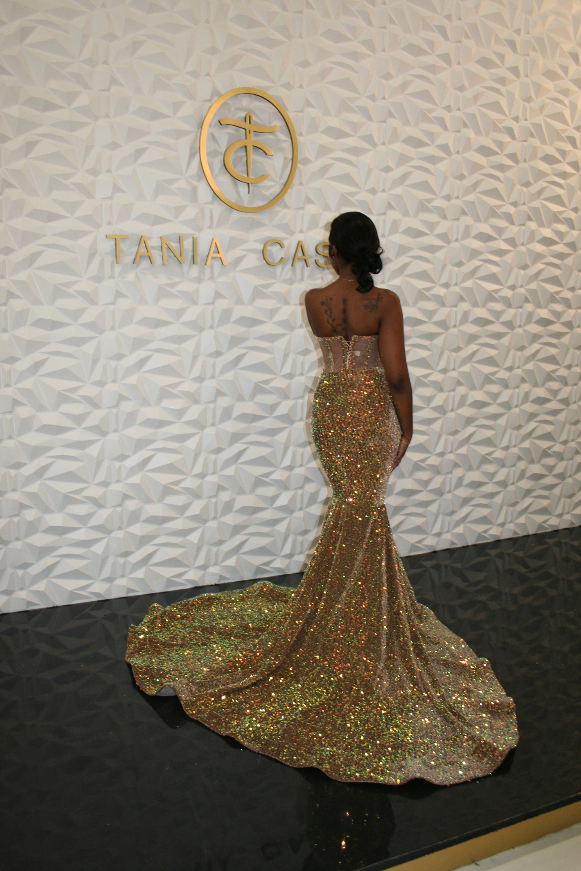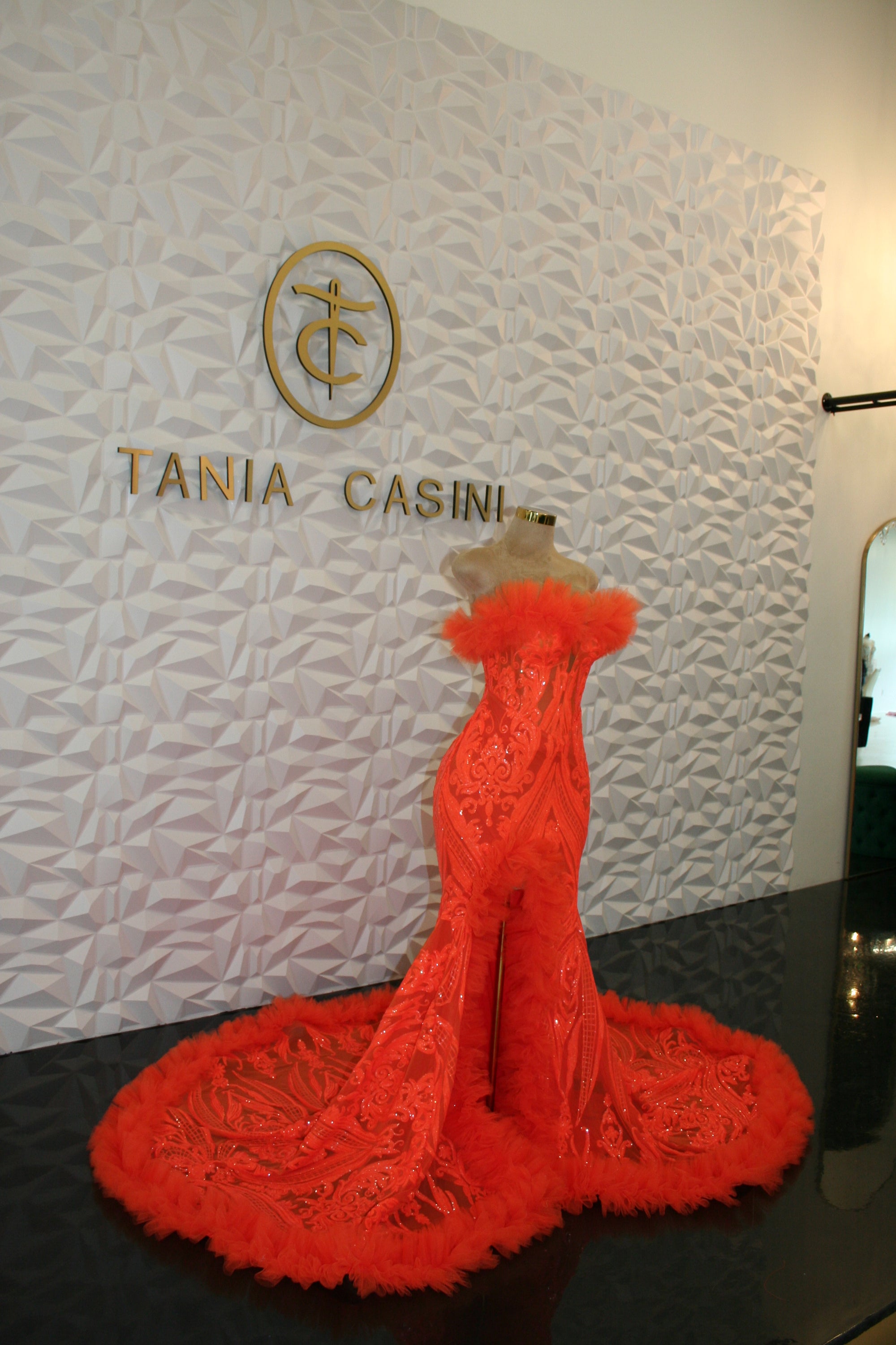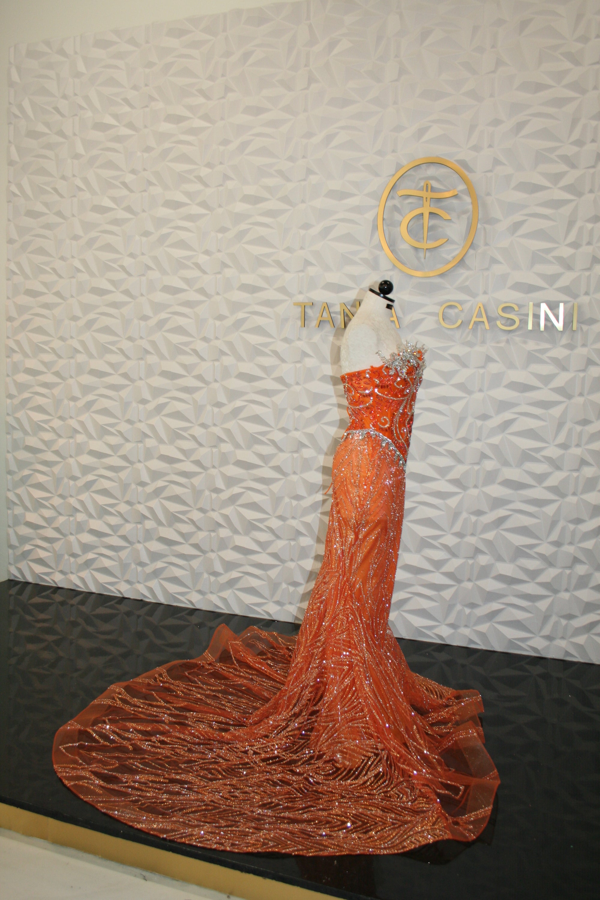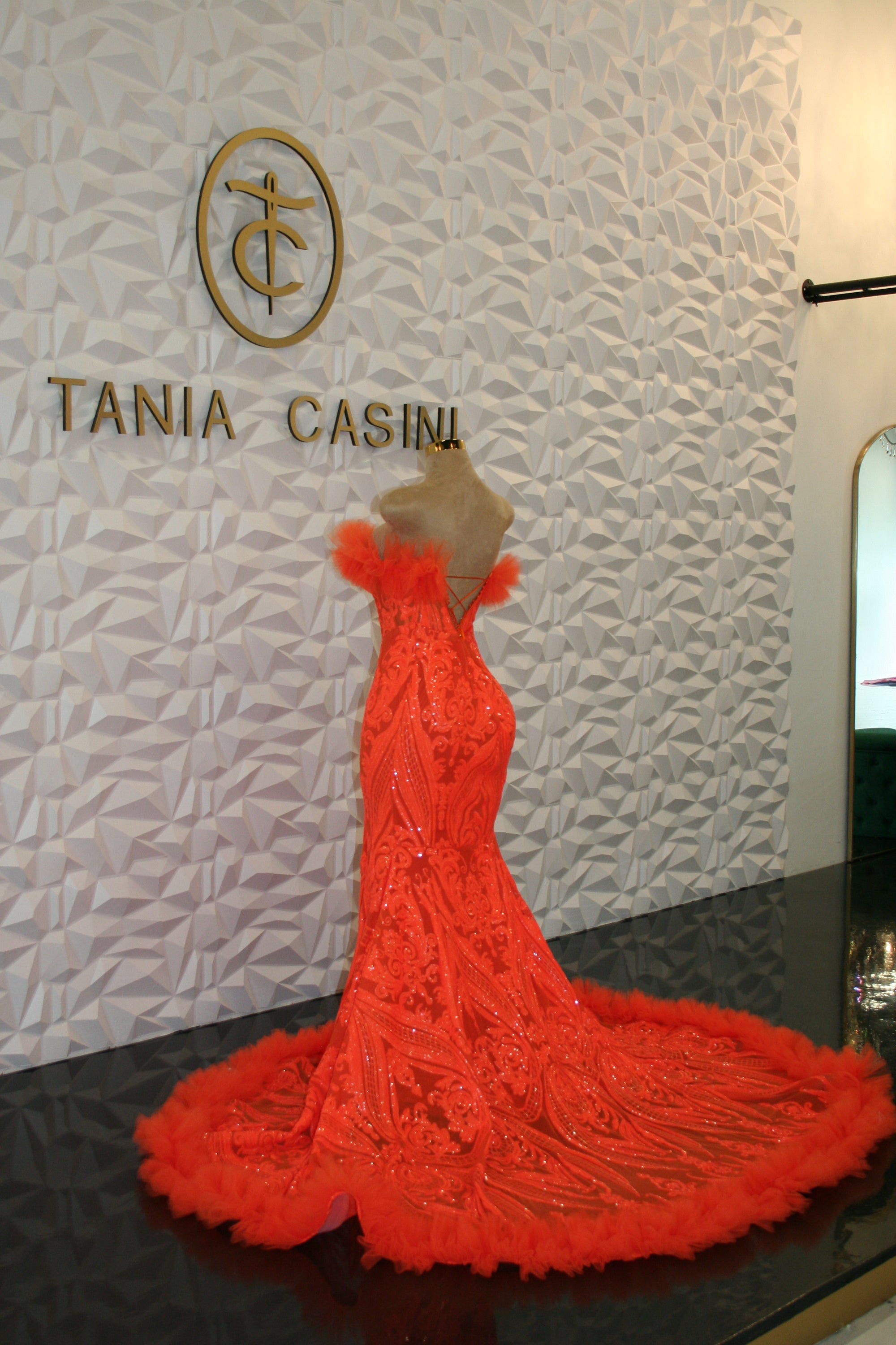 Orange sequin & tulle dress